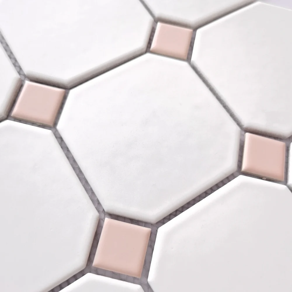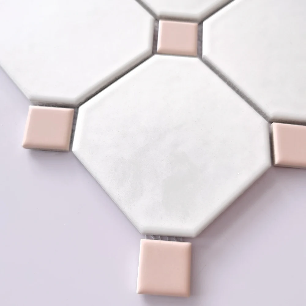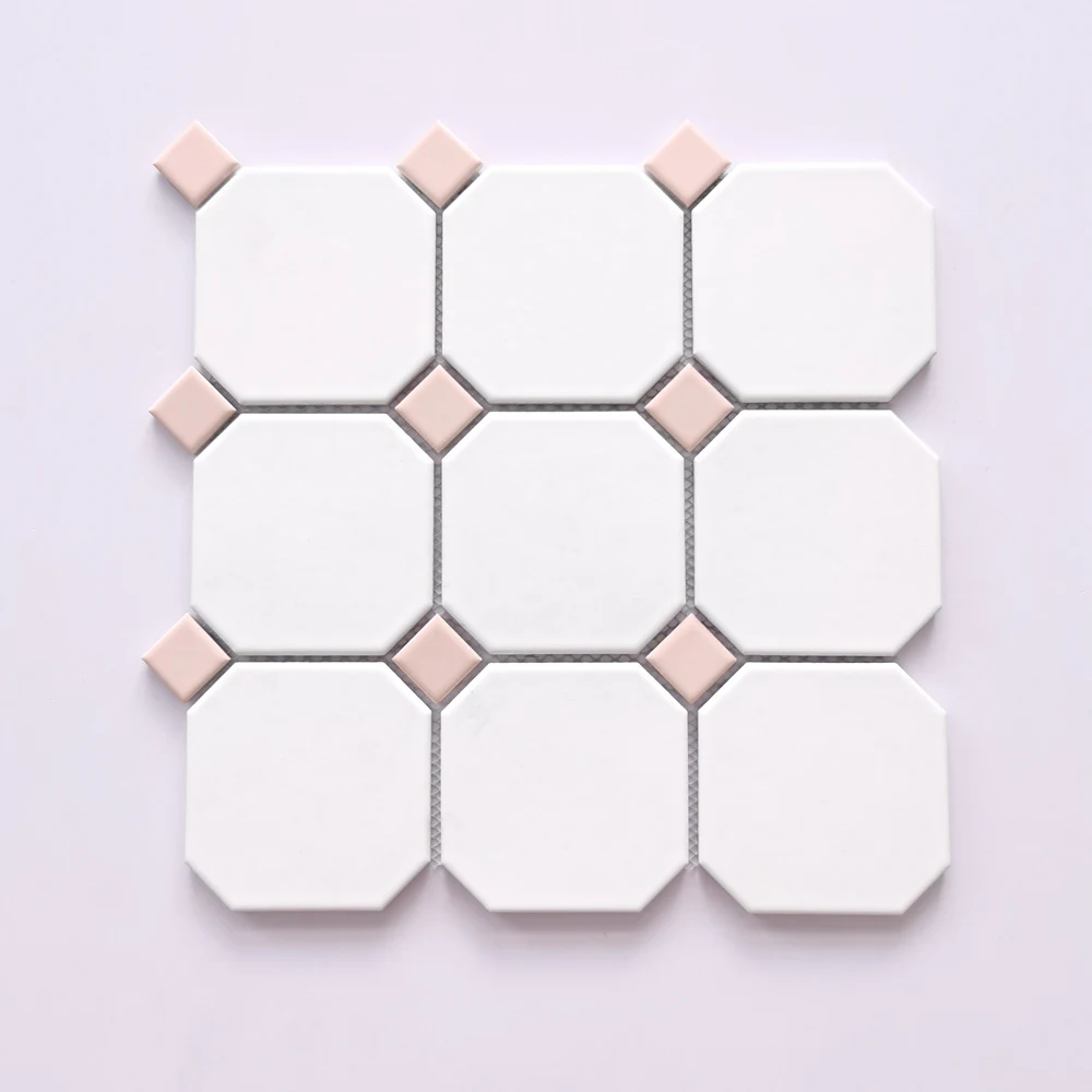 Gạch mosaic bát giác 300*300mm mix màu hồng trắng BIG-004