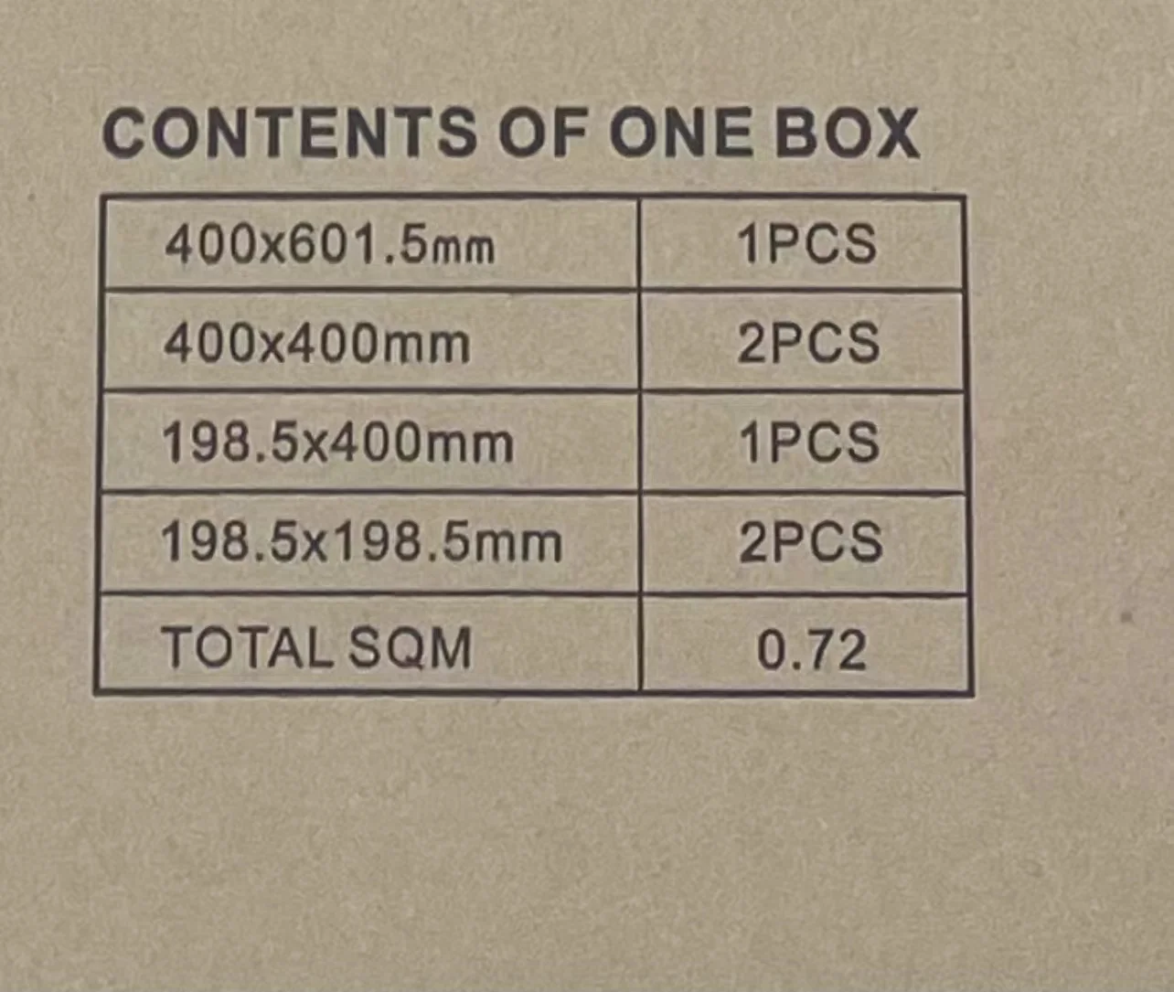200X200MM/200x400mm/400X400mm/400X600MM |