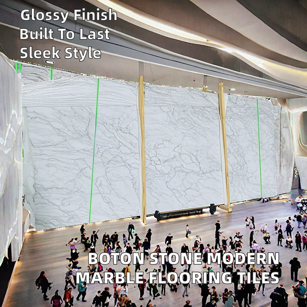 5.Unique Modern Design: BOTON STONE Modern Porcelain Flooring Tiles exhibit a stunning crystal white Calcite marble with a polished surface, perfect for creating a stylish and sophisticated atmosphere in hotels and other projects.